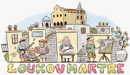 Εμπνευστής του σκίτσου της Loukoumartre είναι ο κομίστας Τάσος Μαραγκός, που πλέον ζει και δημιουργεί στη γενέτειρά του, τη Σύρο.