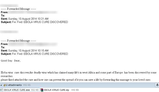 Kακόβουλο email προσελκύει τους χρήστες ισχυριζόμενο ότι ο ιός Έμπολα έχει αντιμετωπιστεί