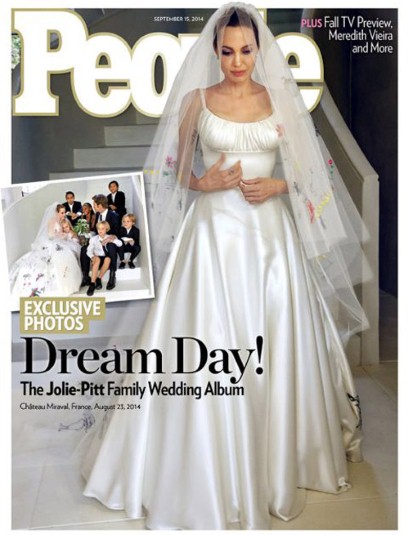 Οι πρώτες φωτογραφίες από το γάμο της Αντζελίνα Τζολί και του Μπραντ Πιτ στον πύργο τους είδαν το φως της δημοσιότητας. Τα βλέμματα στράφηκαν -όπως ήταν φυσικό- στο νυφικό της διάσημης ηθοποιού, το οποίο ήταν διακοσμημένο με κεντήματα εμπνευσμένα από ζωγραφιές των έξι παιδιών του ζευγαριού.