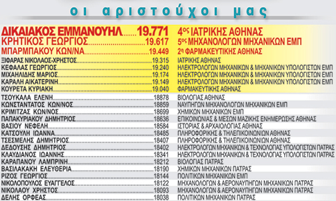 Στον παρακάτω πίνακα, μπορείτε να δείτε συνοπτικά τα αποτελέσματα για όλους τους μαθητές καθώς και τις σχολές στις οποίες εισήχθησαν οι αριστούχοι.