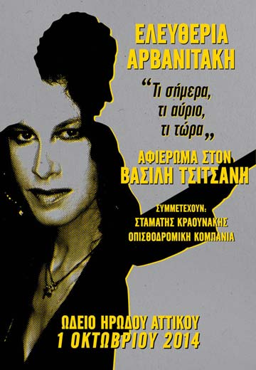 H Eλευθερία Αρβανιτάκη παρουσιάζει ένα μεγάλο αφιέρωμα στο μεγάλο έλληνα δημιουργό Βασίλη Τσιτσάνη, την Τετάρτη 1η Οκτωβρίου στο Ηρώδειο.