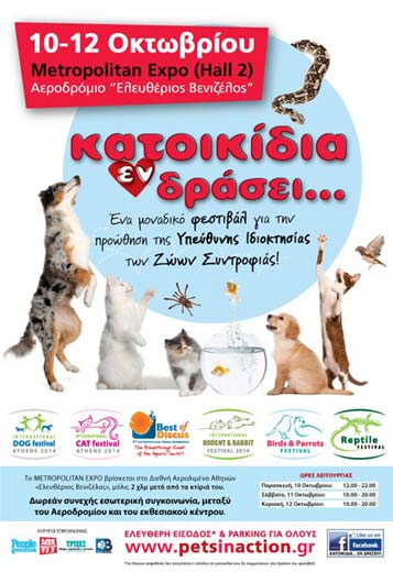 Περισσότεροι από 100 εκθέτες περιμένουν τους λάτρεις των μικρών μας φίλων στο τριήμερο φεστιβάλ «Κατοικίδια Εν Δράσει» που τα έχει όλα.