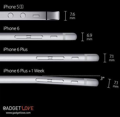 Το γεγονός έγινε γνωστό από τον ιστότοπο MacRumours, ο οποίος δημοσίευσε την ακόλουθη μαρτυρία ενός αναγνώστη του: «Το 6 Plus ήταν περίπου 18 ώρες μέσα στην τσέπη μου ενώ καθόμουν την περισσότερη ώρα. Όταν το τοποθέτησα σε ένα τραπέζι και κάθισα στον καναπέ για να ξεκουραστώ από την οδήγηση, είδα την αντανάκλαση του τζαμιού του iPhone ελαφρώς παραμορφωμένη».
