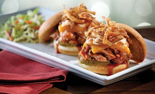 Στο menu θα ανακαλύψουμε επίσης και τα μοναδικά Tennessee BBQ Pork sliders με ψιλοκομμένο χοιρινό φούρνου, ενισχυμένο με Tennessee Glaze σε ψωμί brioche, chipotle Mayonnaise, πίκλες, λιωμένο τυρί cheddar και τραγανά frizzled onions.