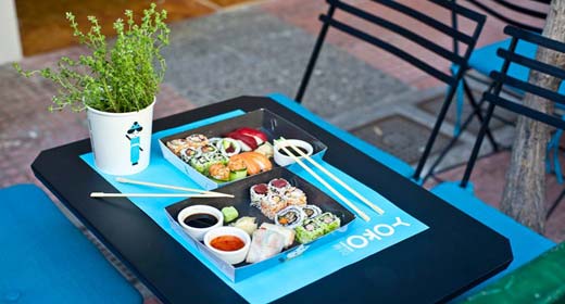 Yoko sushi & Bento Οι λάτρεις του sushi δεν πρέπει να παραλείψουν να επισκεφθούν το εν λόγω, take away, κατάστημα για sushi στα… γρήγορα. Με παραπομπές στη μακρινή Ιαπωνία τόσο στο συνολικό στήσιμο του μαγαζιού όσο και στις επιλογές του καταλόγου, το Yoko sushi & Bento έχει καταφέρει να αποκτήσει πιστούς οπαδούς που θέλουν να βάλουν το sushi στην καθημερινότητά τους. Το κατάστημα κάνει και διανομές στο σπίτι ενώ το φαγητό σερβίρεται μέσα σε ευφάνταστα χάρτινα κουτάκια που αναδεικνύουν το γενικότερο concept. Πατριάρχου Ιωακείμ 39, Κολωνάκι, τηλ.: 21 03424654