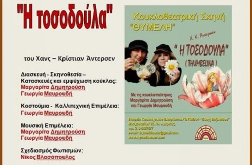 Η «Τοσοδούλα» στο θέατρο «Θυμέλη Έλλης Βοζικιάδου» Το θέατρο «Θυμέλη» αποκτά την δική του Κουκλοθεατρική Σκηνή και για την θεατρική σεζόν 2014-2015 συνεργάζεται με τις κουκλοπαίκτριες Μαργαρίτα Δημητρούση και Γεωργία Μαυρουδή, όπου και θα παρουσιάσει την «Τοσοδούλα», ένα από τα ομορφότερα παραμύθια του σπουδαίου Δανού συγγραφέα Χανς Κρίστιαν Άντερσεν. Κατάλληλο για παιδιά από 2 έως 8 χρονών. Παραστάσεις: Από 18 Oκτωβρίου 2014 μέχρι 24 Ιανουαρίου 2015. Διαβάστε περισσότερα για την παράσταση