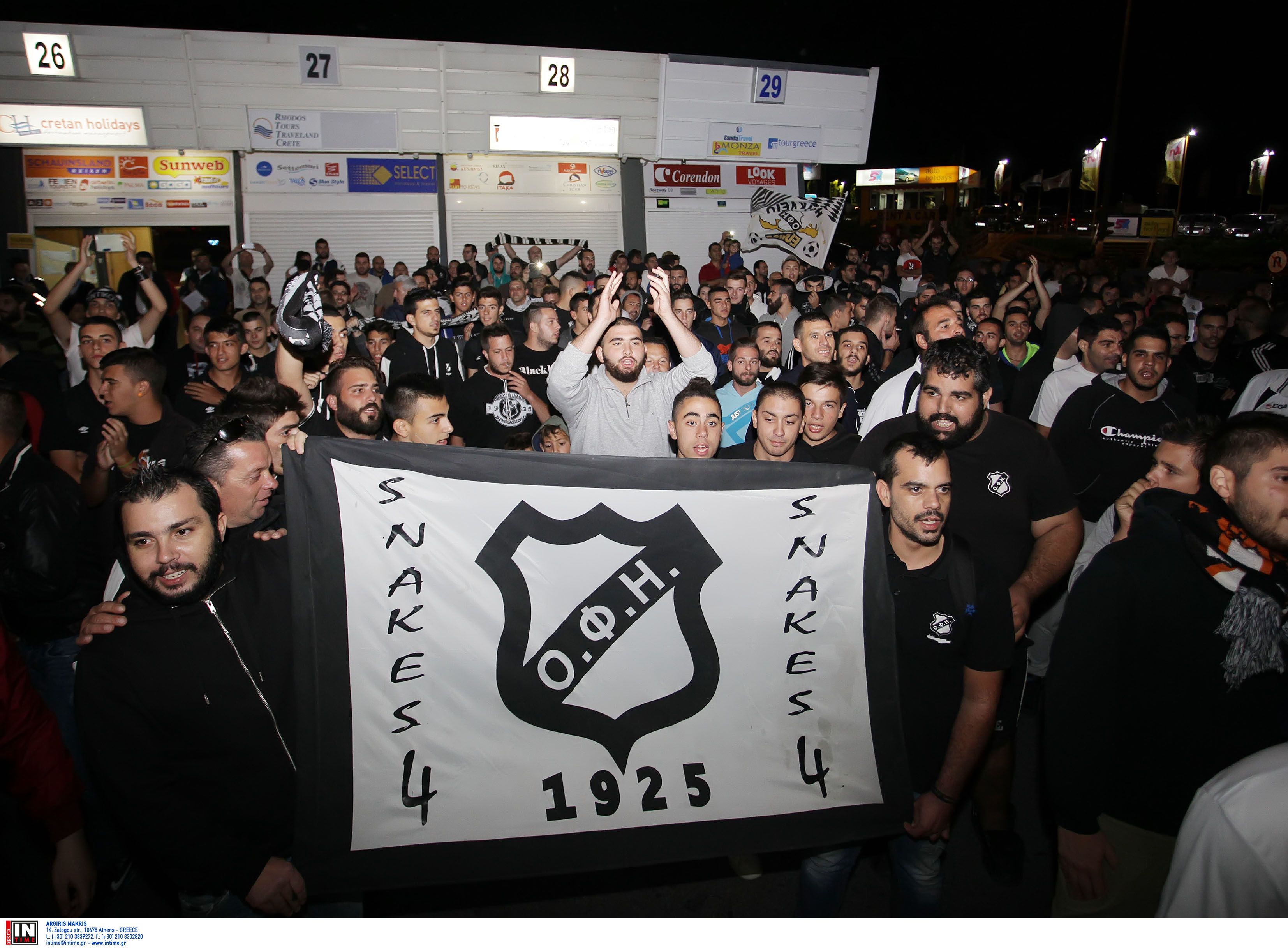 Υποδοχή ηρώων είχαν ετοιμάσει οι οπαδοί τοι ΟΦΗ στους παίκτες και το τεχνικό επιτελείο της ομάδας κατά την άφιξη τους στο αεροδρόμιο, μετά το νικηφόρο 2-1 απέναντι στον Παναθηναϊκό μέσα στη «Λεωφόρο».
