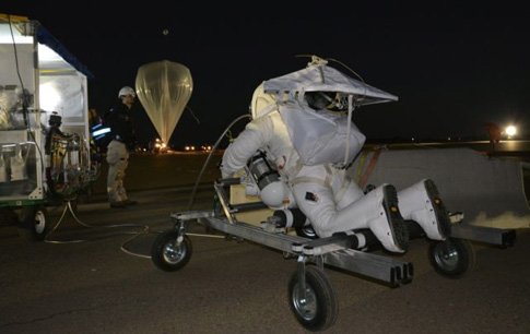 Φορώντας τη στολή του, Ο Γιούστας ετοιμάζεται να στερεωθεί στο αερόστατο (Paragon Space Development Corp) Η αεροδιαστημική εταιρεία του ΜακΚάλουμ, η Paragon Space Development Corporation, ανέπτυξε τη στολή και τα συστήματα υποστήριξης της ζωής που χρειαζόταν ο Γιούστας. Σύμφωνα μάλιστα με τους New York Times ο αντιπρόεδρος της Google αρνήθηκε την οικονομική στήριξη της εταιρείας για να μην θεωρηθεί το εγχείρημα διαφημιστικό κόλπο.