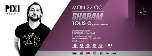 Το PIXI παρουσιάζει ένα ακόμα πολυσυζητημένο όνομα της διεθνούς dance σκηνής και έτερον ήμισυ του θρυλικού δίδυμου Deep Dish, τον Sharam, τη Δευτέρα. Τη βραδιά θα πλαισιώσει ο Tolis Q, της Quantized Music.