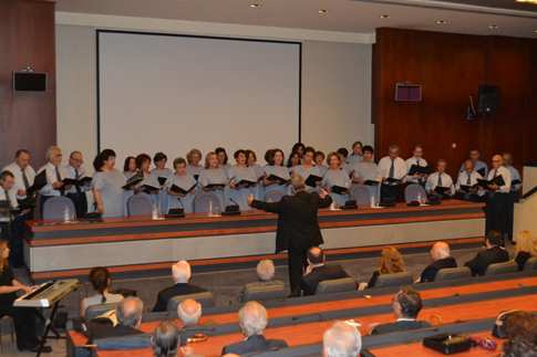 H εντυπωσιακή ερμηνεία ελληνικών τραγουδιών για την περίσταση από τη Χορωδία του Υπουργείου Πολιτισμού.