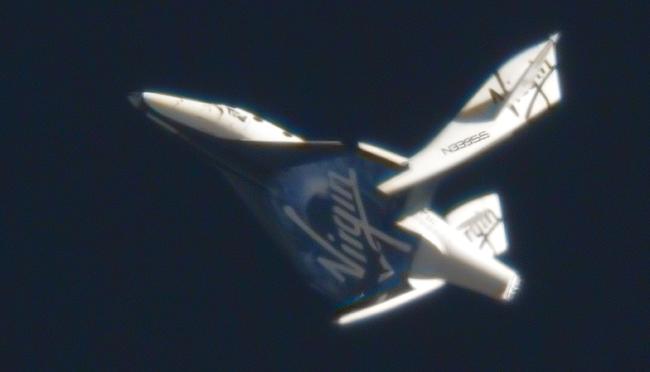 To SpaceShipTwo με τα φτερά στη θέση feathering σε προηγομενη δοκιμή (Πηγή: Virgin Galactic)