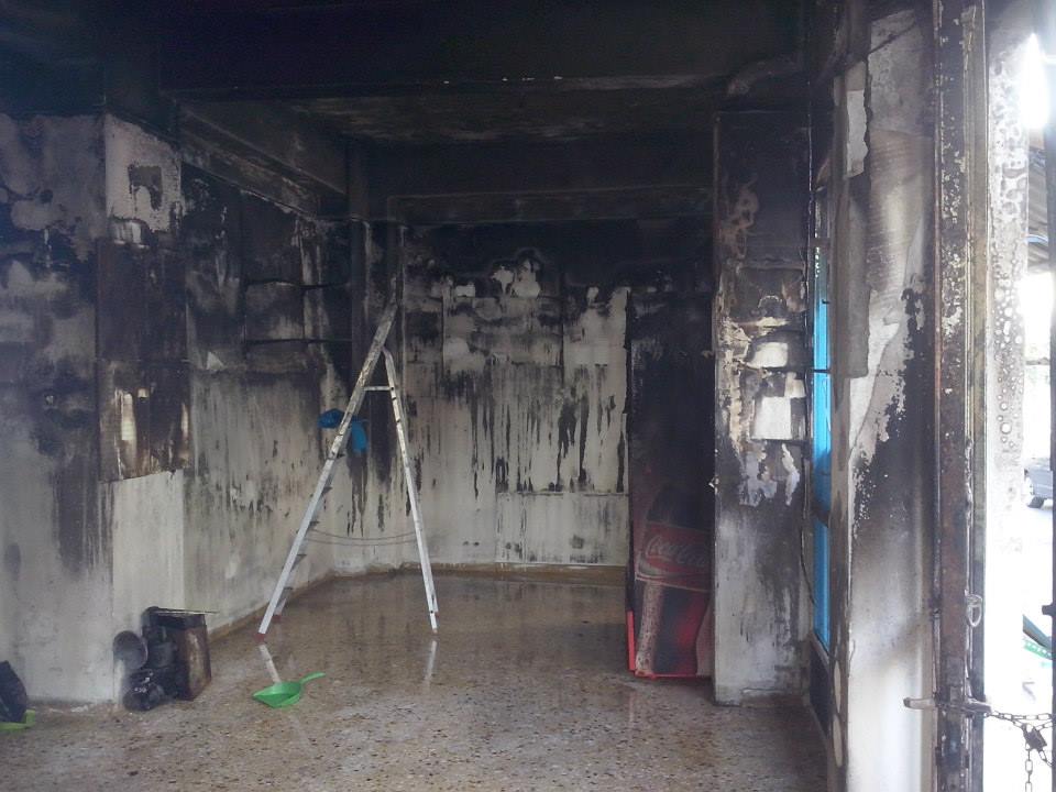 Σπασμένα τζάμια, κατεστραμμένες πόρτες, καμένοι τοίχοι. Είναι το μόνο που απέμεινε από το μίνι μάρκετ που διατηρούσε μετανάστης από το Μπαγκλαντές στο Ηράκλειο της Κρήτης.