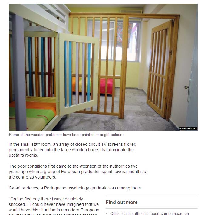 Το βρετανικό δίκτυο BBC ασχολείται με τα «κλουβιά της ντροπής», τα ειδικά κρεβάτια που φιλοξενούν πάνω από 65 παιδιά με ειδικές ανάγκες στο ΚΕΠΕΠ Λεχαινών. Οι εικόνες με τα μικρά παιδιά με αναπτυξιακές διαταραχές που είναι περιορισμένα και εγκλωβισμένα μέσα σε ξύλινα κλουβιά, είναι γροθιά στο στομάχι.