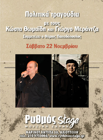 Αφιέρωμα στα πολιτικά τραγούδια από τους Κώστα Θωμαΐδη και Γιώργο Μεράντζα