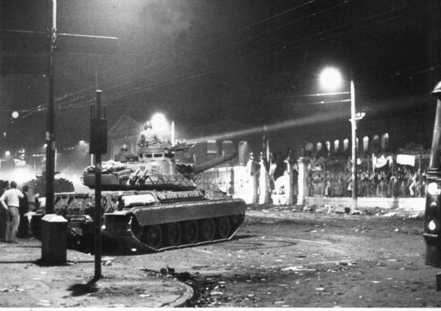 15:30 Καθ’ οδόν για την αμερικανική πρεσβεία η πομπή με την αιματοβαμμένη σημαία σύμβολο της εξέγερσης του Πολυτεχνείου, την οποία μεταφέρουν μέλη της νεολαίας ΠΑΣΟΚ. Ακολουθούν περίπου 300 άτομα.