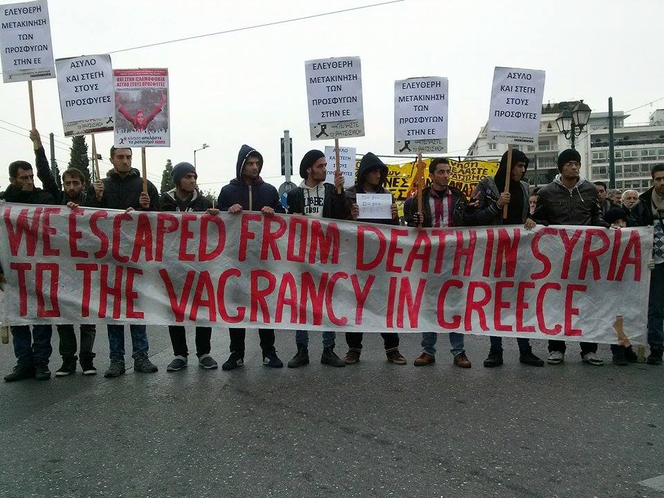 Στην απεργιακή κινητοποίηση συμμετέχουν και εκπρόσωποι των Σύρων προσφύγων από το Σύνταγμα.