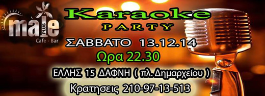 Ακόμα ένα karaoke party που μοιράζει δώρα είναι και αυτό που θα συμβεί στο Male Plus της Δάφνης, το Σάββατο 13 Δεκεμβρίου. Για τους καλλίφωνους της παρέας το δώρο θα είναι μια φιάλη, για την καλύτερη σκηνική παρουσία το έπαθλο θα είναι μια διανυκτέρευση στο Hotel Roza, ενώ για οι «Κακοφωνίξ» θα λάβουν κέρασμα τα σφηνάκια. Τη διοργάνωση της εκδήλωσης έχει το www.karaokegreekstar.gr, ενώ για κρατήσεις καλέστε στο τηλέφωνο 210 9713513.