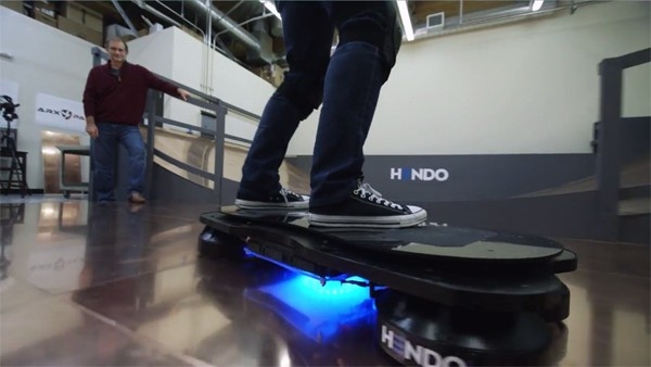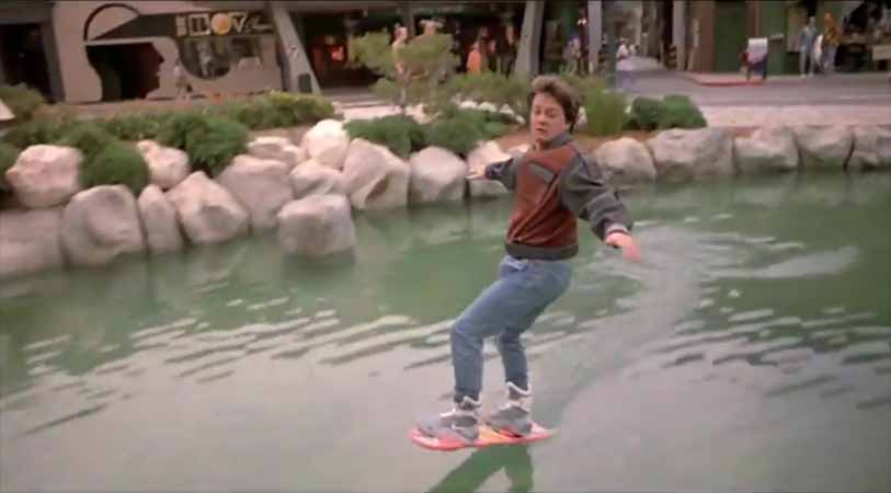 Εντύπωση είχε προκαλέσει επίσης η εμφάνιση ενός ιπτάμενου σκέιτμπορντ. Ο αρχιτέκτονας Γκρεγκ Χέντερσον αναζητούσε τρόπους να δημιουργήσει ασφαλή αντισεισμικά κτίρια. Κατά τη διάρκεια των ερευνών του, ανακάλυψε έναν επαναστατικό τρόπο αποκόλλησης και αιώρησης ενός κτιρίου χρησιμοποιώντας ισχυρά ηλεκτρομαγνητικά πεδία μεταξύ κτίσματος και εδάφους, ώστε μόλις χτυπήσει ο εγκέλαδος, το οίκημα να παραμένει ασφαλές. Όμως στην πορεία διαπίστωσε ότι η τεχνολογία αυτή μπορεί να βρει μια πληθώρα εφαρμογών στις μεταφορές: κάπως έτσι, και βασισμένος στο σύστημα μαγνητικής αιώρησης, το λεγόμενο MagLev (Magnetic Levitation), δημιούργησε την ιπτάμενη σανίδα Hendo. To ιπτάμενο σκέιτμπορντ της ταινίας Η σανίδα Hendo που μπορεί να αιωρείται