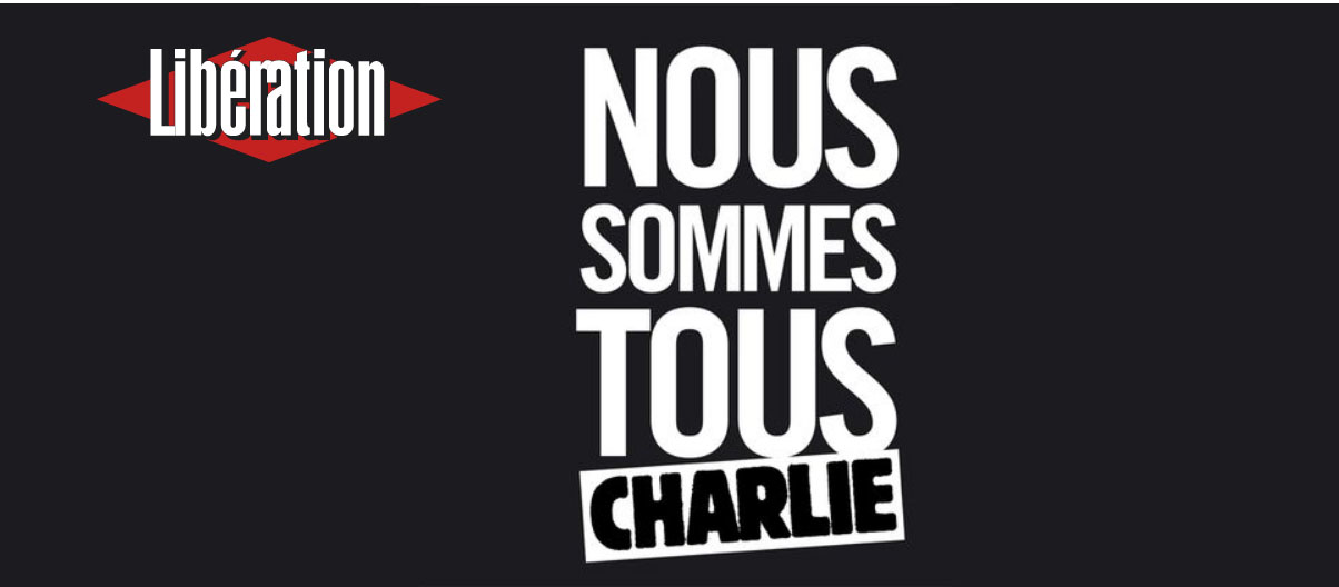 «Nous Sommes Tous Charlie» (Είμαστε όλοι Charlie), είναι οι λέξεις σε μαύρο φόντο που κυριαρχούν στο ηλεκτρονικό πρωτοσέλιδο της εφημερίδας Liberation.