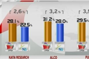 Κατά 2,6% προηγείται ο ΣΥΡΙΖΑ βάσει νέας δημοσκόπησης