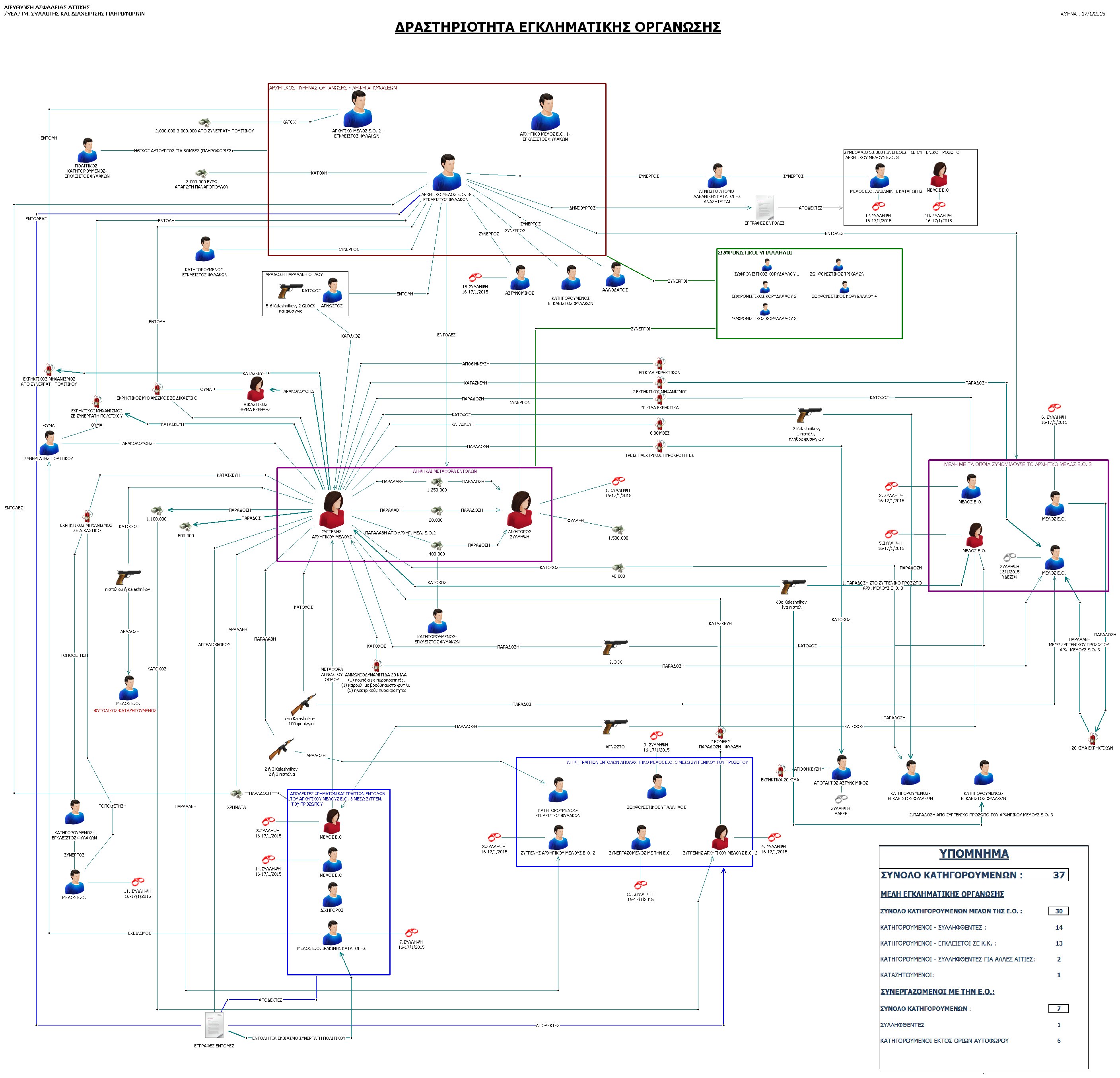 Από την ΕΛ. ΑΣ δόθηκε στη δημοσιότητα και σχεδιάγραμμα, στο οποίο φαίνονται οι τρόποι διασύνδεσης των μελών της οργάνωσης (κάντε κλικ για να το δείτε σε μεγέθυνση):