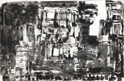 Το άσπρο του χαρτιού, το μοναδικό φόντο των συνθέσεων αυτών, υποδύεται ένα απόλυτο φως που μπαινοβγαίνει αμείλικτο στα χαλάσματα ναών και σπιτιών και τα εξαϋλώνει προβάλλοντας στις μαύρες επιφάνειές τους τη δύναμη μιας μετέωρης ομορφιάς. Αποκαλύπτοντας τις κρυφές δομές του μελανιού, που εδώ ταυτίζονται με τους φθαρμένους σκελετούς των αρχιτεκτονημάτων, τα έργα αυτά περνούν από την αφαιρετική αναπαράσταση της εξωτερικής πραγματικότητας στη μνημειακή απόδοση μιας εσωτερικής θέασης του κόσμου.