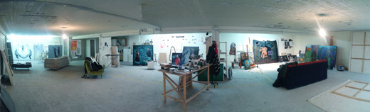 Κοινός παρονομαστής η ζωγραφική, η φιλία και ο αλληλοσεβασμός. Ο καθένας επέλεξε το χώρο του, πάγκοι και καναπέδες χρησίμεψαν σαν άυλοι τοίχοι.