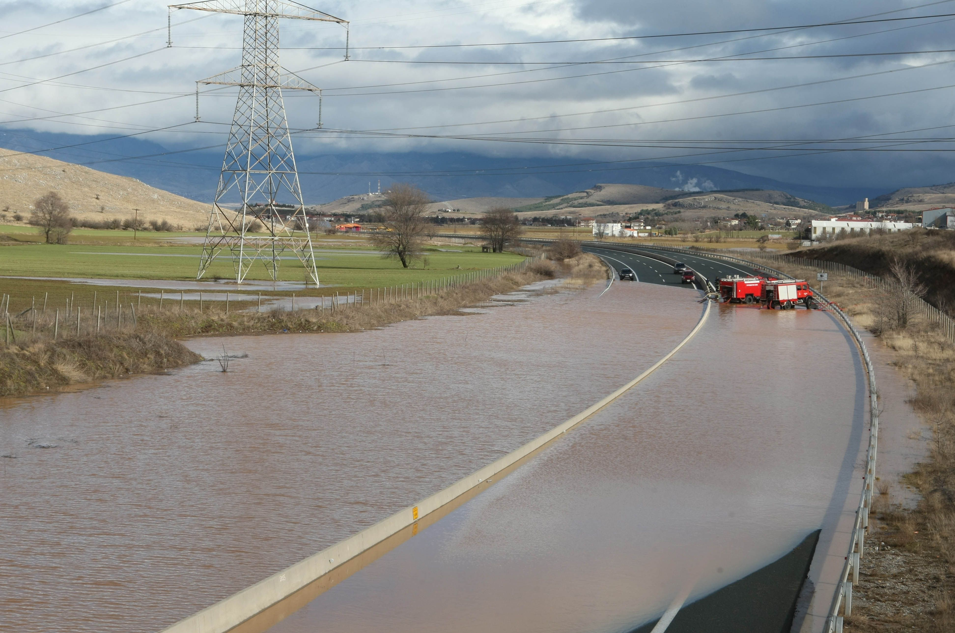 Πλημμυρισμένη η Εγνατία στο ύψος της Καλαμιάς Κοζάνης (φωτ. Eurokinissi)
