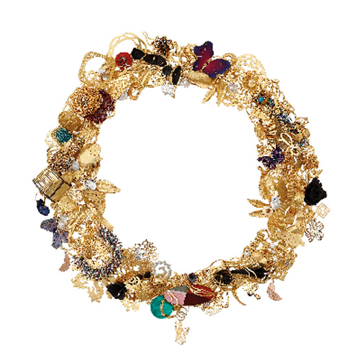 Με αφορμή την έκθεση η Μαίρη Σαμόλη δημιούργησε το δεύτερο συμβολικό στεφάνι από κοσμήματα και των 36 καλλιτεχνών.