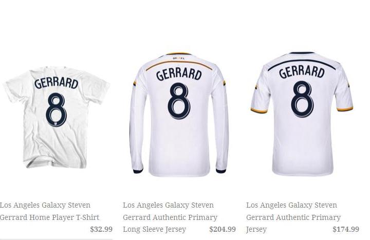 Μια ευχάριστη είδηση, που τελικά... δεν ήταν και τόσο ευχάριστη περίμενε τους οπαδούς των Λος Άντζελες Γκάλαξι την Πέμπτή, καθώς κυκλοφόρησε στην αγορά η φανέλα του μεγάλου καλοκαιρινού αποκτήματος της ομάδας, του Στίβεν Τζέραρντ. Μέχρι εκεί είναι τα καλά νέα, τα άσχημα αρχίζουν όταν ήρθε η στιγμή που οι ενδιαφερόμενοι πήγαν να την αγοράσουν από το «teamlastore.com» και είδαν τις τιμές, οι οποίες έχουν... ξεφύγει! Η... φθηνή φανέλα, δηλαδή η κοντομάνικη, κοστίζει 174,99 δολάρια (153 ευρώ), ενώ η ακριβή με μακρύ μανίκι, 204,99 δολάρια (179 ευρώ).
