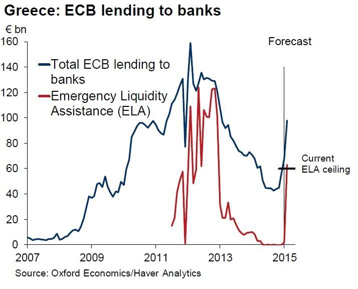 Χωρίς ευρωπαϊκό πρόγραμμα η Ελλάδα θα εξαρτάται αποκλειστικά από τον έκτακτο μηχανισμό χορήγησης ρευστότητας (ELA) της Τράπεζας της Ελλάδος για να καλύπτει τις βραχυπρόθεσμες ανάγκες της μέσω των ελληνικών τραπεζών. Αυτό, υπό την προϋπόθεση ότι η Ευρωπαϊκή Κεντρική Τράπεζα δεν θα αποσύρει τη βοήθεια προς τις ελληνικές τράπεζες, όπως έκανε το Μάρτιο του 2013 στην Κύπρο, προκειμένου να εξαναγκάσει τη χώρα να υπαχθεί σε πρόγραμμα της ΕΕ και του ΔΝΤ που θα διασφαλίζει τη φερεγγυότητα των τραπεζών.