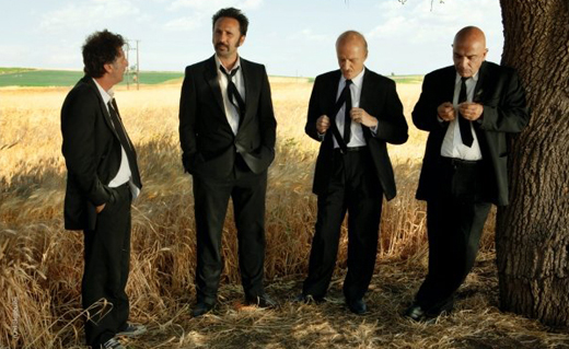 Τα «4 Μαύρα Κοστούμια» του Ρένου Χαραλαμπίδη είναι κάτι περισσότερο από μία μαύρη κωμωδία. Οι ήρωες της ταινίας αποφασίζουν να φορέσουν τα μαύρα τους κοστούμια, για τελευταία ελπίζουν φορά, και να μπλέξουν σε μια ιστορία που θα μπορούσε να τους αποζημιώσει για τα καλά.