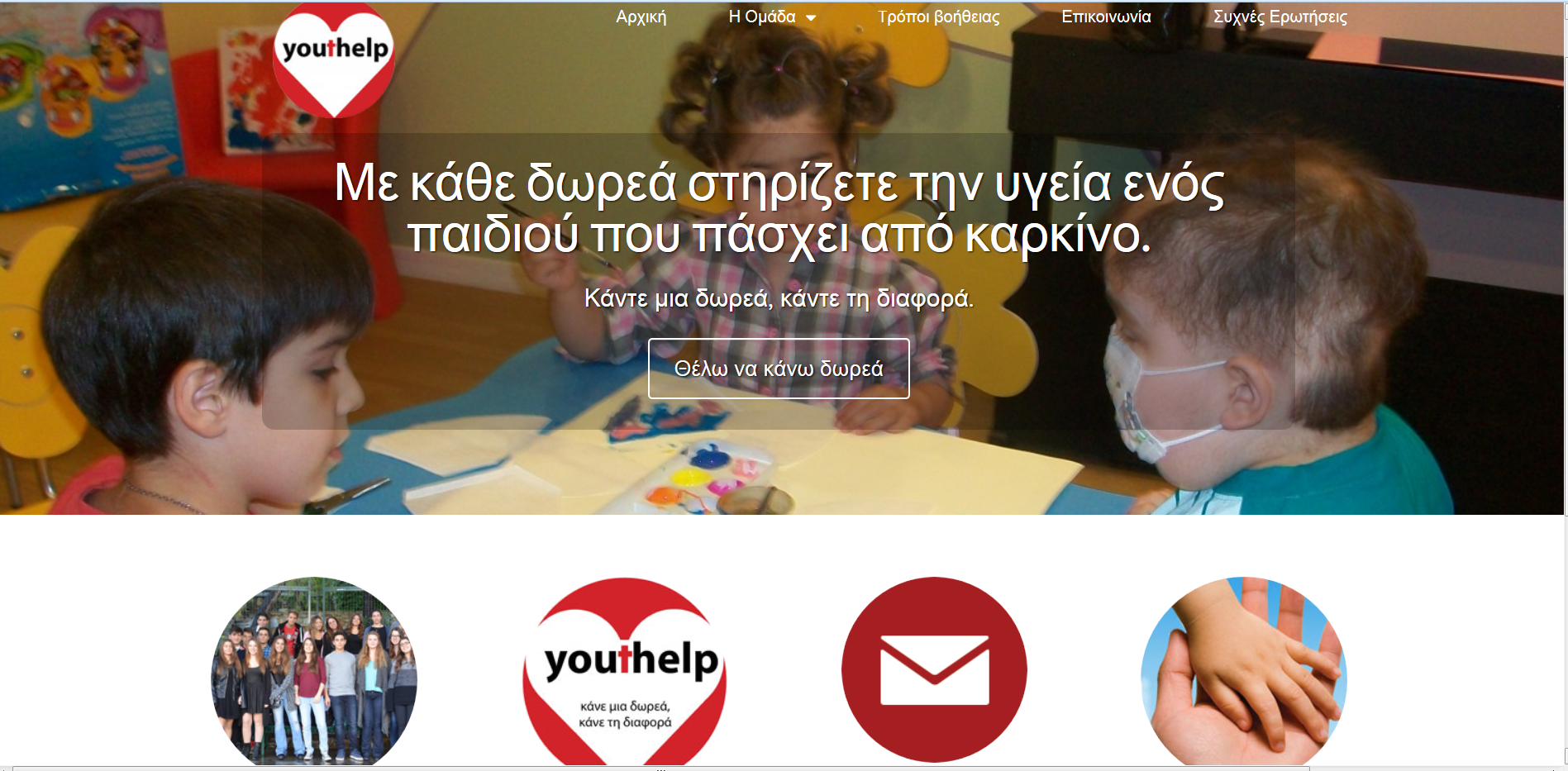 To youthelp.gr είναι το αποτέλεσμα της μαθητικής, μη κερδοσκοπικής κοινωνικής επιχείρησης ομάδας μαθητών του Αμερικανικού Κολλεγίου Ελλάδος- PIERCE. Με την μεσολάβησή τους, όλοι μπορούν να συνεισφέρουν τον οβολό τους, στην προσπάθεια των οικογενειών που έχουν παιδιά με διάφορες παθήσεις.