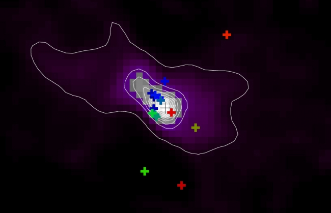 Εικόνα του ετοιμοθάνατου άστρο IRAS 15103-575 στο φάσμα του υπέρυθρου φωτός και των ραδιοκυμάτων. Τα χρώματα δείχνουν την ταχύτητα του εκτινασσόμενου υλικού (Πηγή: Institute of Astrophysics of Andalusia)
