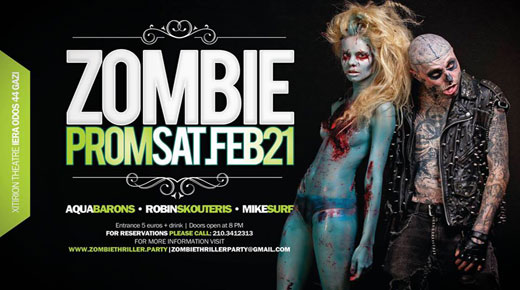 Όπως αναφέραμε παραπάνω, η αλλόκοτη αυτή βόλτα θα φέρει τους συμμετέχοντες με τα λευκά πρόσωπα και το «νεκρό» βλέμμα στο Θέατρο Χυτήριο για το Ζombie Thriller Party, το οποίο έρχεται για τρίτη φορά ανανεωμένο με trick or treat παιχνιδιάρικη διάθεση να ενώσει τους fan των ταινιών, σειρών τρόμου και cosplay σε ένα νέο, ετήσιο «Χορό Τεράτων». Στο πάρτι θα παίξουν Live οι Αqua Barons, ενώ οι DJs θα ανεβάσουν το κέφι με τις μουσικές τους επιλογές. Από τη spooky βραδιά δεν θα λείπουν οι διαγωνισμοί καλύτερου κοστουμιού, τα special effects, τα zombie makeover, τα κεράσματα, καθώς και πολλά happenings.