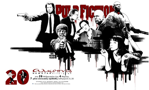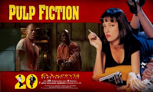 Με αφορμή τα 20 χρόνια από την πρώτη προβολή της ταινίας, ο κινηματογράφος ΑΛΚΥΟΝΙΣ new star art cinema προβάλλει καθημερινά στις 21:30 από 26 Φεβρουαρίου έως 4 Μαρτίου και για 7 μόνο προβολές, το φιλμ νουαρ του Κουέντιν Ταραντίνο που τον εδραίωσε ως τον μεγα auter του αμερικανικού ανεξάρτητου σινεμά κερδίζοντας τον Χρυσό φοίνικα του φεστιβάλ των Καννών.