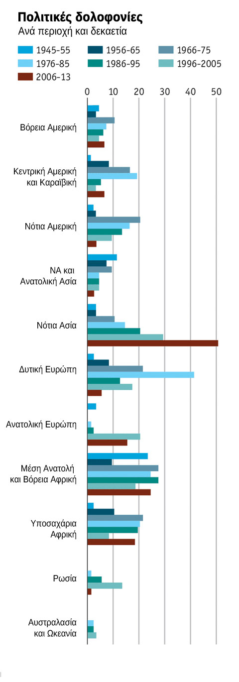 Economist: Tριπλασιάστηκαν οι πολιτικές δολοφονίες μεταξύ 1970-2013