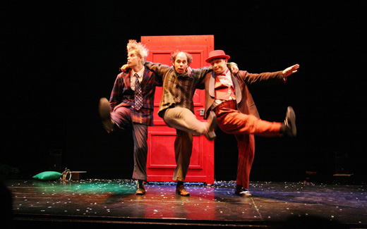Με ντεκόρ ένα μαύρο πανί και μια κατακόκκινη πόρτα, οι Compagnia 2+1 παντρεύουν την παντομίμα, την ταχυδακτυλουργία και την ακροβασία, παίζουν ζωντανά μουσική οι ίδιοι, χορεύουν, εφαρμόζουν στο θέατρο κινηματογραφικές τεχνικές όπως η αργή κίνηση και δανείζονται γκαγκς από τον βωβό κινηματογράφο που θυμίζουν θρυλικούς ήρωες μιας αλλοτινής εποχής: τον Σαρλώ, τον Χοντρό και τον […]