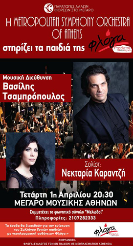 H Metropolitan Symphony Orchestra of Athens στηρίζει το έργο του Συλλόγου «Φλόγα», με μια μεγάλη συναυλία στο Μέγαρο Μουσικής Αθηνών. Η Συμφωνική Ορχήστρα που δημιουργήθηκε από το διεθνούς φήμης πιανίστα, συνθέτη και μαέστρο Βασίλη Τσαμπρόπουλο, την Τετάρτη 1η Απριλίου, παρουσιάζει ένα ξεχωριστό πρόγραμμα στο Μέγαρο Μουσικής Αθηνών, με τη συμμετοχή της ερμηνεύτριας της βυζαντινής υμνωδίας […]