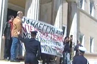 Ομάδα από 20-25 αντιεξουσιαστές εισέβαλε πριν από λίγη ώρα στο προαύλιο της Βουλής, άνοιξαν πανό, πέταξαν φυλλάδια και φώναξαν συνθήματα. Λίγη ώρα αργότερα αποχώρησαν. Η αστυνομία απέκλεισε την ομάδα των αντιεξουσιαστών και προχώρησε σε 20 προσαγωγές. Για «ανασφάλεια, που τείνει να γίνει γενικευμένη» κάνει λόγο η ΝΔ.