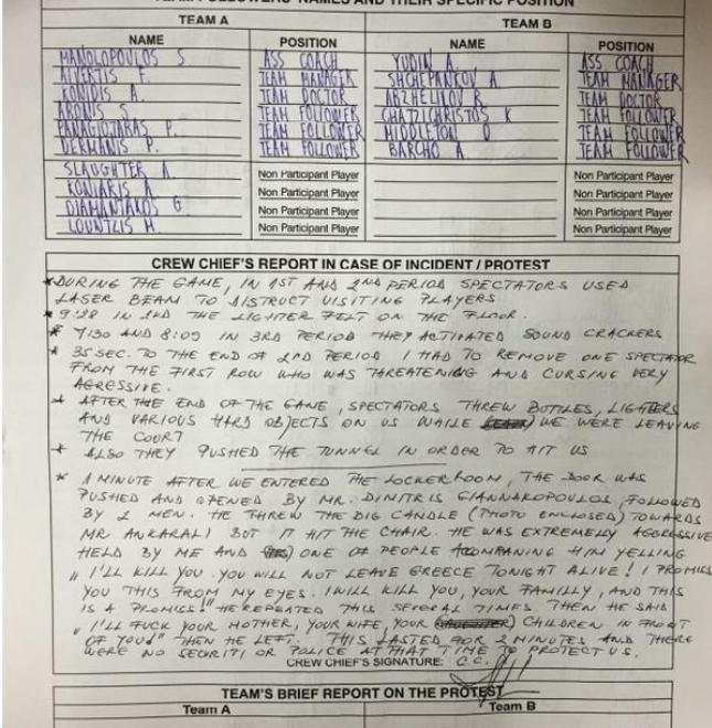 Aυτό ήταν το φύλλο αγώνα της αναμέτρησης της περασμένης Δευτέρας: