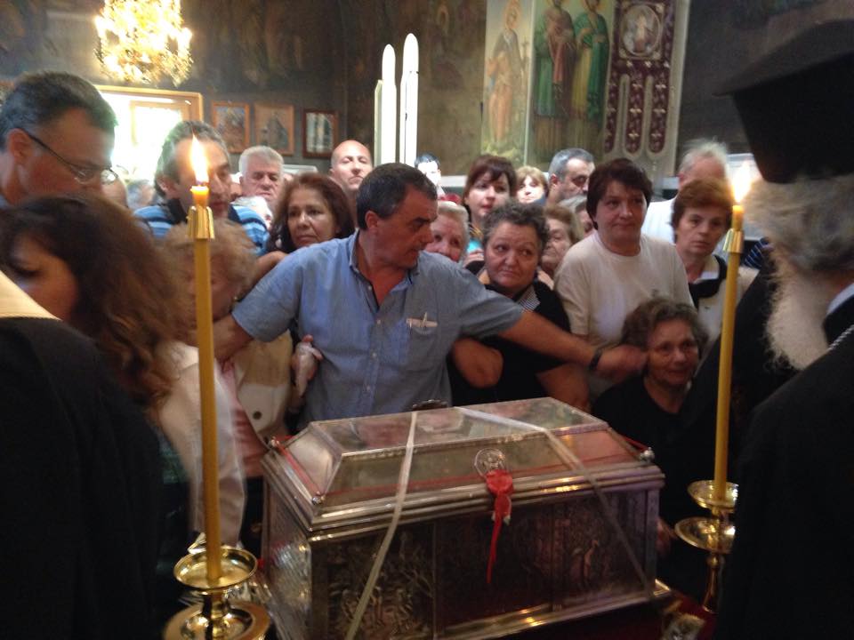 Από νωρίς το πρωί συγκεντρώθηκε πλήθος πιστών έξω από το νοσοκομείο, που αυξανόταν όσο περνούσε η ώρα. Όταν έφθασε το σκήνωμα στο παρεκκλήσι, σχηματίστηκαν τεράστιες ουρές. Η ένταση, η μακρά αναμονή και οι ασφυκτικές συνθήκες προκάλεσαν λιποθυμίες, ενώ σε πολλές περιπτώσεις ακούστηκαν διαμαρτυρίες για τις συνθήκες του προσκυνήματος.