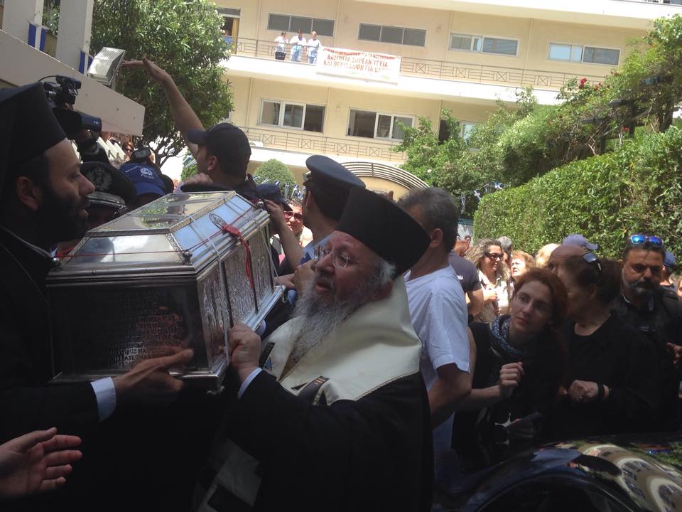 Το σκήνωμα δεν υποδέχθηκε, όπως αρχικά είχε ανακοινωθεί, ο υπουργός Υγείας Παναγιώτης Κουρουμπλής. «Είναι θέμα εντελώς προσωπικό του κάθε ανθρώπου και δεν χρειάζεται να συνεχίζουμε να το συζητάμε» δήλωσε ο ίδιος στον ΑΝΤ1.