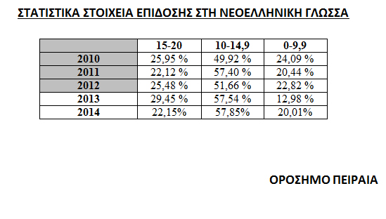 Το ίδιο φροντιστήριο έδωσε και τα στατιστικά στοιχεία επίδοσης στη Νεοελληνική Γλώσσα: