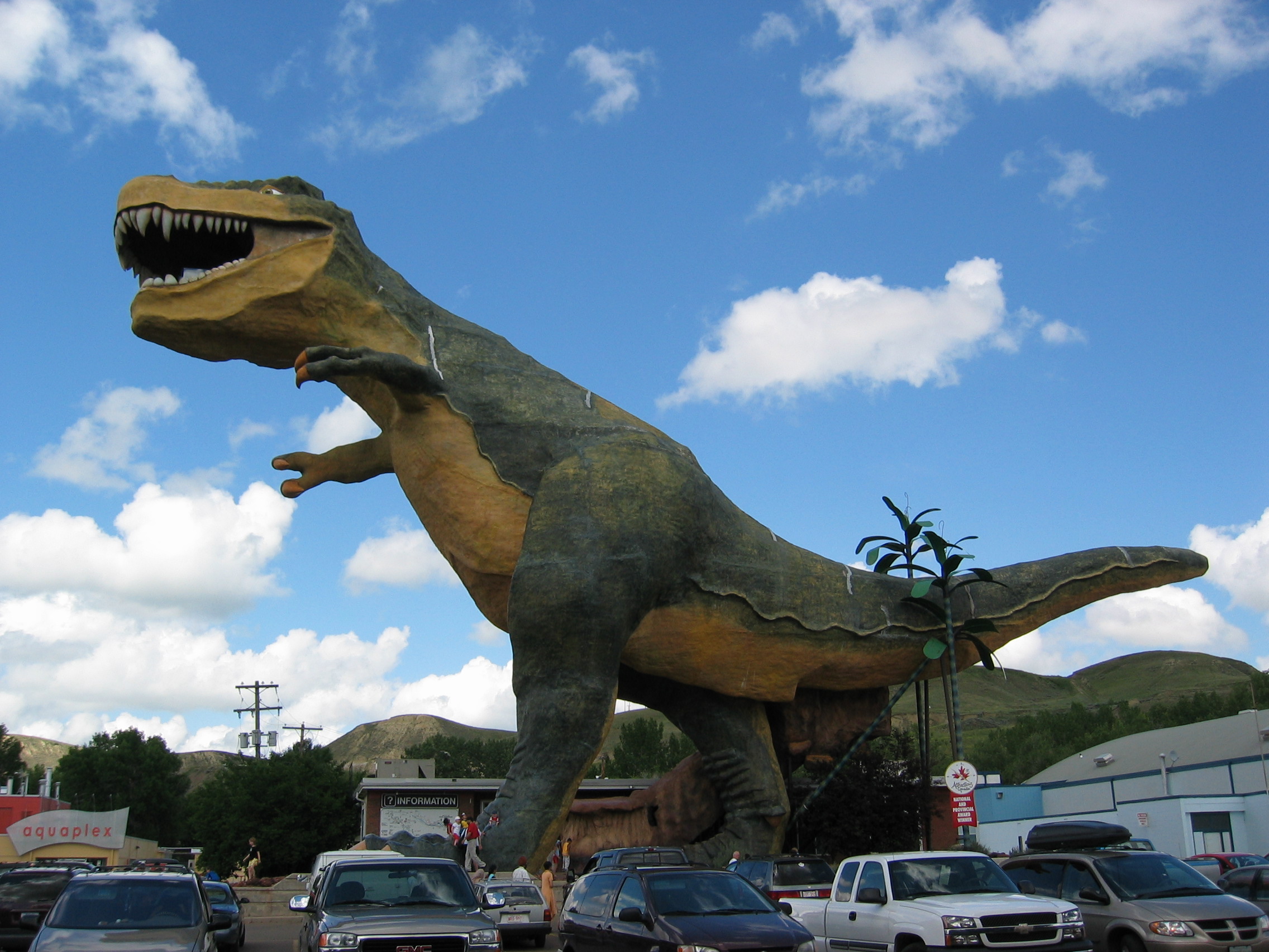 Μάλιστα, όσοι το επιθυμούν, έναντι εισιτηρίου της τάξεως των δυο ευρώ περίπου, μπορούν να ανέβουν στην κορυφή του Τ-Ρεξ και να θαυμάσουν την θέα της καναδικής επαρχίας από το σημείο που την ατένιζε κι εκείνος, πριν μερικές εκατοντάδες χιλιάδες χρόνια.
