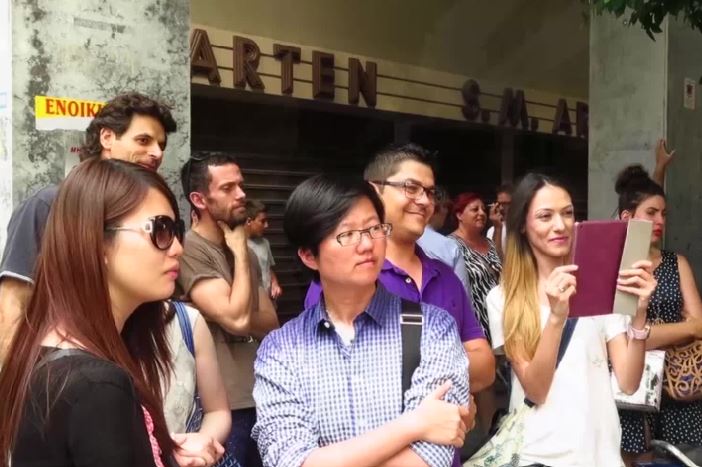 Έλληνες και ξένοι δημοσιογράφοι έξω από το Υπουργείο Οικονομικών την Κυριακή 28 Ιουνίου 2015 για την συνεδρίαση του Συμβουλίου Συστημικής Ευστάθειας προκειμένου να αξιολογήσει την κατάσταση όπως έχει διαμορφωθεί στο τραπεζικό σύστημα τις τελευταίες ώρες και να λάβει μέτρα αν χρειαστεί.