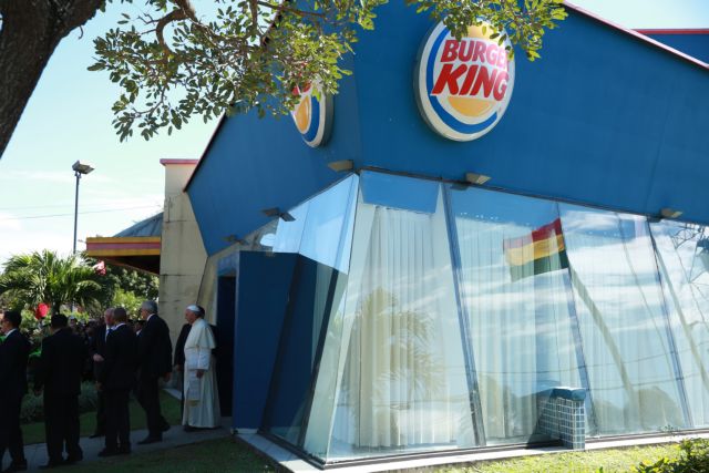 Σταυρός… σφυροδρέπανο και αλλαγή αμφίων στα Burger King για τον Πάπα