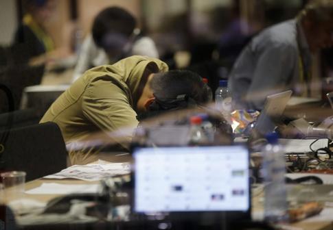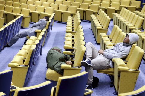 Εξουθενωμένοι από τις πολλές ώρες εργασίας, με το ρολόι να δείχνει ξημερώματα της επόμενης ημέρας, οι δημοσιογράφοι που κάλυπταν τη Σύνοδο Κορυφής της Ευρωζώνης στις Βρυξέλλες δεν άντεξαν και πήραν έναν ύπνο στην αίθουσα Τύπου, στους διαδρόμους, στις καρέκλες, όπου βρήκαν, αναμένοντας του ηγέτες των «19» να καταλήξουν σε αποφάσεις. Οι ευρωπαίοι ηγέτες πάντως δεν έδειξαν να πτοούνται. Δείτε τις φωτογραφίες...