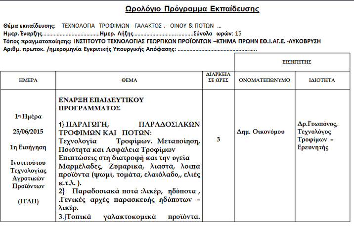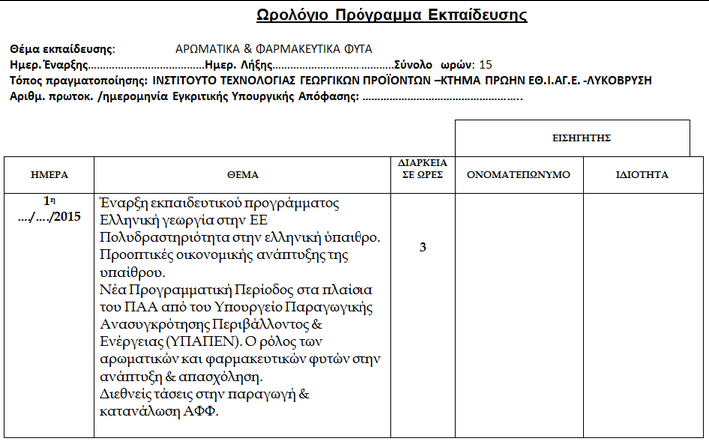 Τα σεμινάρια διοργανώθηκαν με πρωτοβουλία του Βόρειου Τομέα της Περιφέρειας Αττικής και την υλοποίηση τους ανέλαβε ο ο Ελληνικός Γεωργικός Οργανισμός «Δήμητρα». Η διεξαγωγή των σεμιναρίων γίνεται στο κτήμα και τις εγκαταστάσεις του Ινστιτούτου Τεχνολογίας Γεωργικών Προϊόντων (πρώην Εθνικού Ινστιτούτου Αγροτικής Έρευνας) στη Λυκόβρυση.