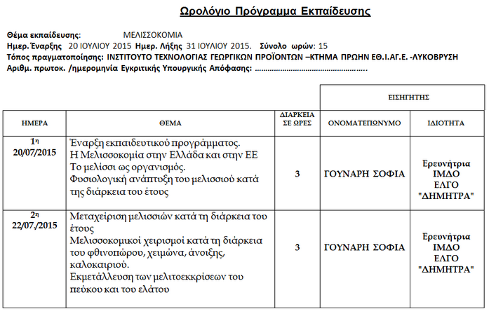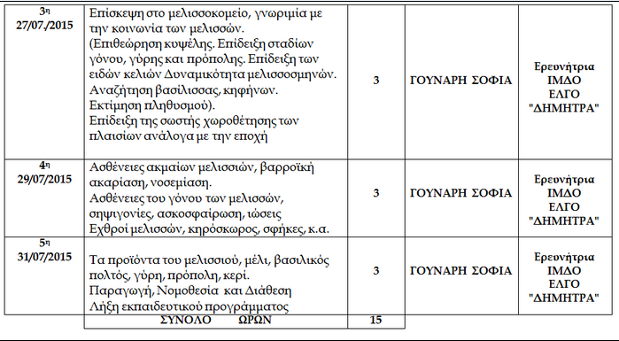Το σεμινάριο Μελισσοκομίας, ωστόσο, πραγματοποιείται (από την ερευνήτρια Σοφία Γούναρη), στις εγκαταστάσεις του ΕΛΓΟ «Δήμητρα» στην Αγία Παρασκευή.
